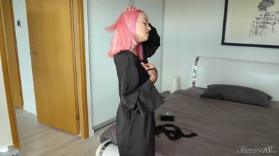 La teen Kiara J a les cheveux roses et elle est très excitée. Sur le lit, elle attrape un oreiller et se masturbe passionnément avec jusqu'à l'orgasme.