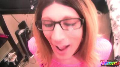 La transsexuelle Jessica Lynne, garde ses lunettes pour sucer une bite en POV et se faire pilonner le cul. Elle a vraiment une gueule de qui aime le jus.