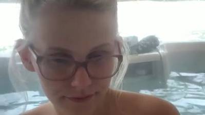 Cette fille blonde amateur avec de beaux seins et un beau cul, se filme sur sa webcam alors qu'elle est assise nue à l'extérieur dans la piscine en hiver.