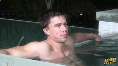 Le jeune gay Curt se branle et se baigne ensuite dans la piscine
