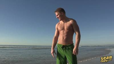 Hunter est un gay blond au torse bien définit. Après une promenade à la plage, il se branle et éjacule sur lui même, tout en faisant jouer ses muscles.