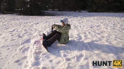 Lucette Nice est allée skier et dans la neige elle suce la bite d'un mec. Dans le chalet elle baise sur le sol de la salle commune pour les touristes.