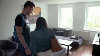 Une jeune brune ramassée dans la rue rentre chez elle avec un inconnu pour se faire baiser et avaler une bonne partie du sperme !