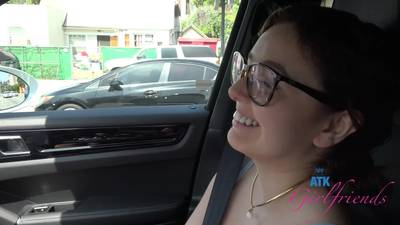 Après une visite au musée de cire, Leana Lovings suce la bite de son amant dans la voiture et se fait creuser la chatte.