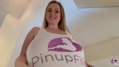 La bombe blonde Maria Body montre comment elle les caresse, les touche et les expose sous son t-shirt, ne manquez pas une telle vue !