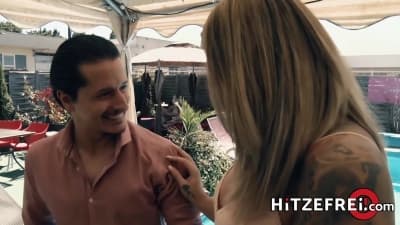 Mia Blow, tatouée et nue, passe la journée à la piscine. Son mec en profite et, après lui avoir léché la chatte, la baise impitoyablement !