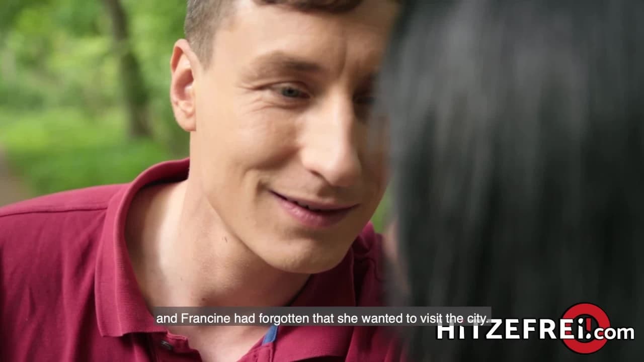 Anissa Kate, sublime Allemande, séduit un touriste, suce sa bite raide goulûment, écarte les cuisses pour se faire lècher et défoncer la chatte poilue.
