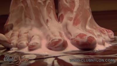 La femme en bas enlève ses talons aiguilles et montre le fétichisme pieds et commence à les sucer pour que vous puissiez voir à quel point elle est coquine