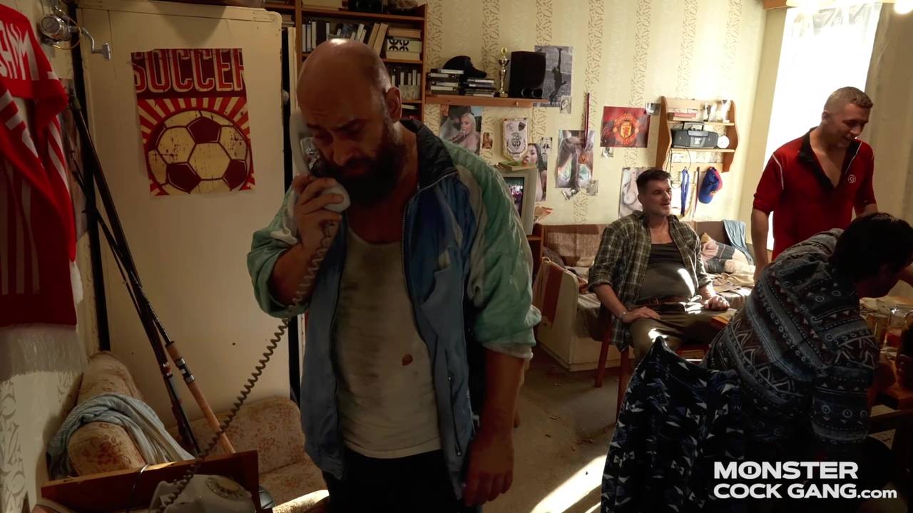Le club des hommes cochons de l'après-midi mange de la malbouffe, parle des femmes et regarde du porno. Et le propriétaire partage sa femme !
