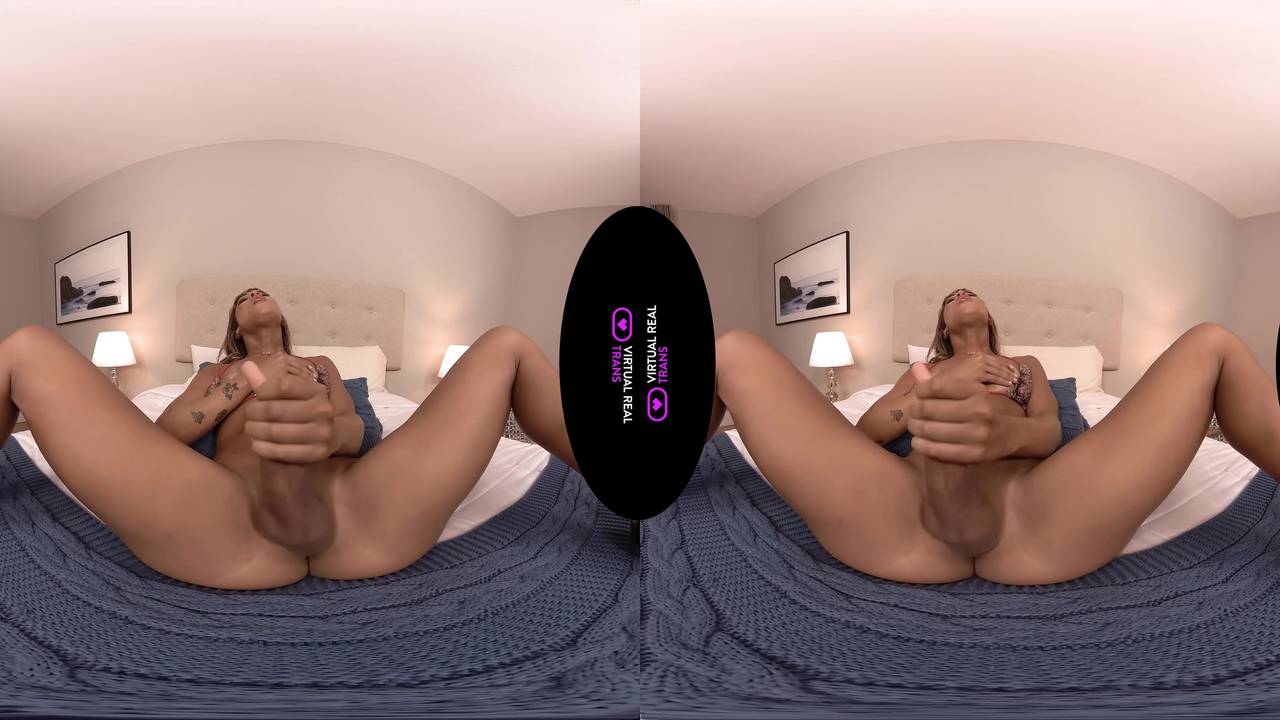 Après la piscine, la transe a enfoncé son sextoy dans son trou serré palpitant en VR, puis elle se branle la bite jusqu'au jet de sperme qui coule partout.