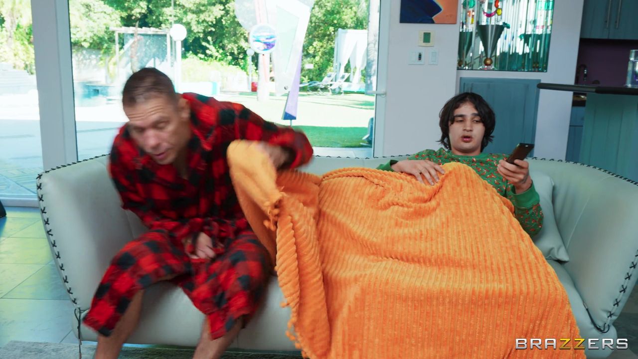 Molly Little suce son petit ami sur le canapé jusqu'à ce que son beau-père Mick arrive et s'assoit avec eux. Molly s'empresse de lui faire un footjob.