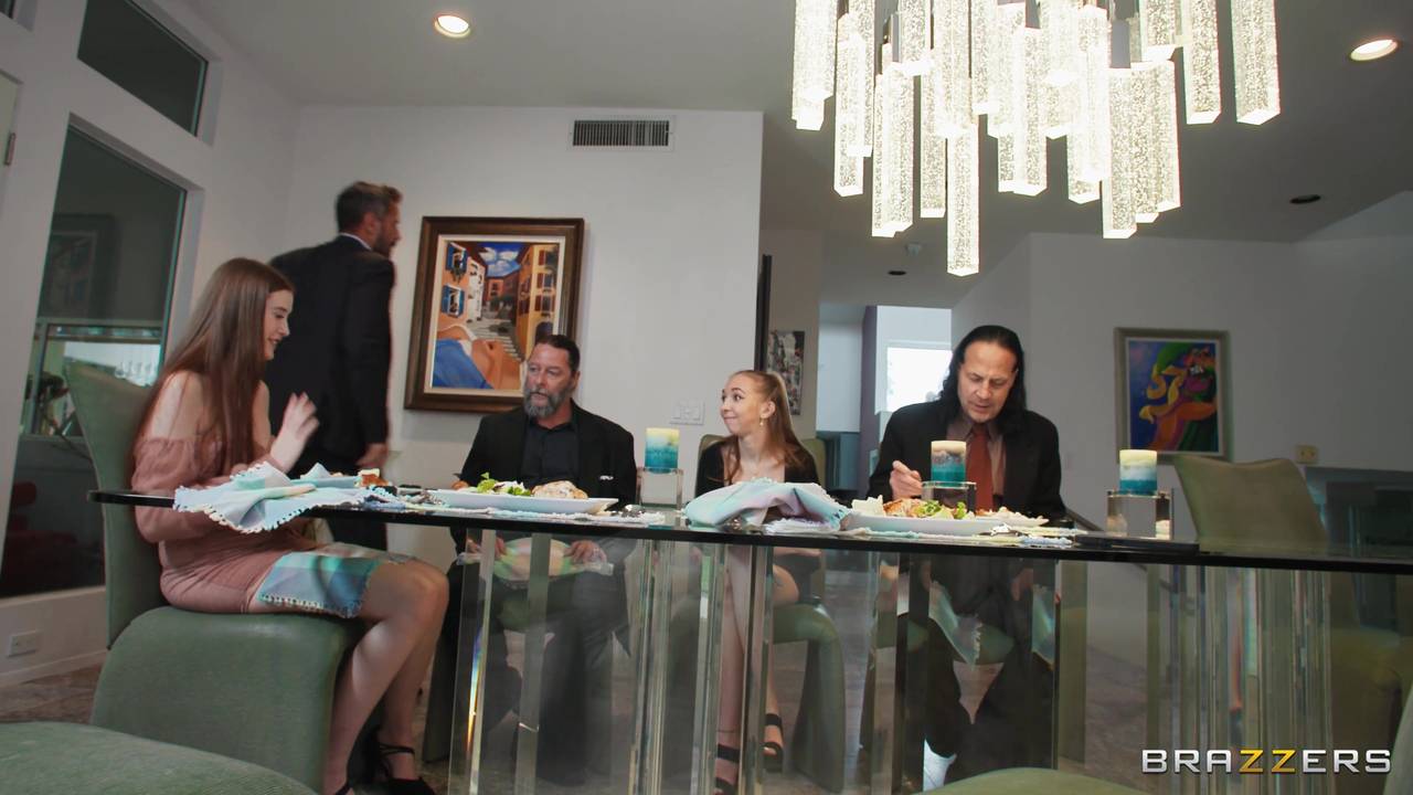 Angela White se fait piéger par des amis lors d'un dîner. Elle a tout de suite aimé ce qu'elle a vu, alors elle passe à l'action. Sucer la bite sous la table !