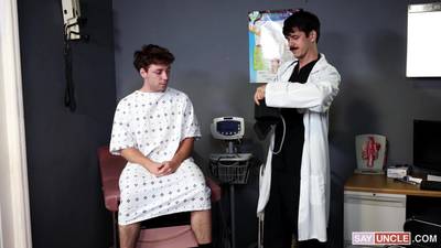 Le médecin fait se pencher son patient pour lui enfoncer un doigt afin d'examiner sa prostate. Mais la situation s'envenime et le médecin sort sa bite.