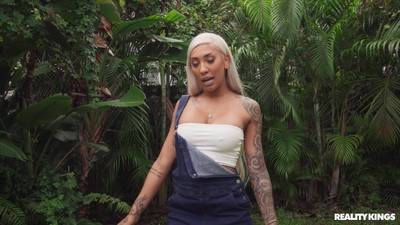 Une fois que Kona Jade termine son vlog de jardinage, elle commence à s'asperger d'eau parce qu'elle est excitée ! Logan arrive et éteint le feu dans sa chatte.