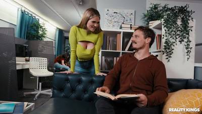Robby est en train de se détendre avec sa copine lorsqu'elle aperçoit Angie qui le regarde. Lorsque sa copine s'en va, Angie va vers lui et profite de ses seins