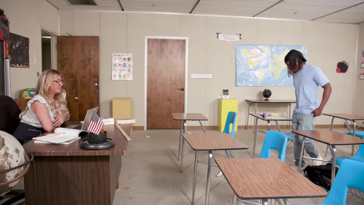 Dee dit à sa prof que sa copine se plaint de la taille de sa bite ! Lolly Dames lui demande donc de sortir sa bite et lorsqu'il le fait, elle est surprise.