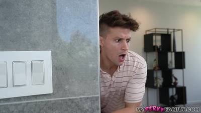 Sofi Adams prend une douche et surprend le demi-frère en train de l'espionner. Elle est excitée alors elle lui fait sortir sa bite pour qu'elle puisse la sucer.
