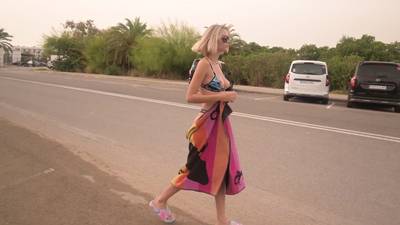 La journée est parfaite pour que Lana se promène nue sur la plage. Assise sur le sable, les jambes ouvertes, elle laisse libre cours à notre imagination.