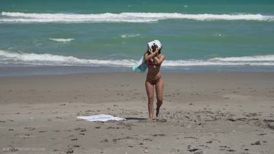 Arrivée à la plage, cette blonde enlève son maillot de bain pour nous faire découvrir sa beauté nue. Ses seins ronds nous rendent fous de plaisir à sa vue.