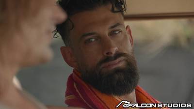 Gay se touchant les tétons tout en se faisant sucer par un barbu