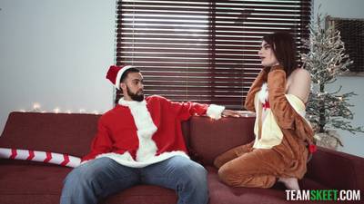 Sous sa tenue de renne, Reese Robbins porte de la lingerie très sexy ! James ne peut pas résister et sort sa bite pour qu'elle puisse le sucer et l'engloutir !