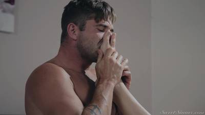 Après quelques caresses et baisers passionnés sur son corps, cet homme bizarre lui suce les orteils puis les doigts de sa chatte pendant qu'elle le suce.