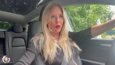 Après un long trajet en voiture, tout ce que veut cette blonde française en chaleur, c'est se garer, relever sa jupe et se pénétrer avec son gode préféré.