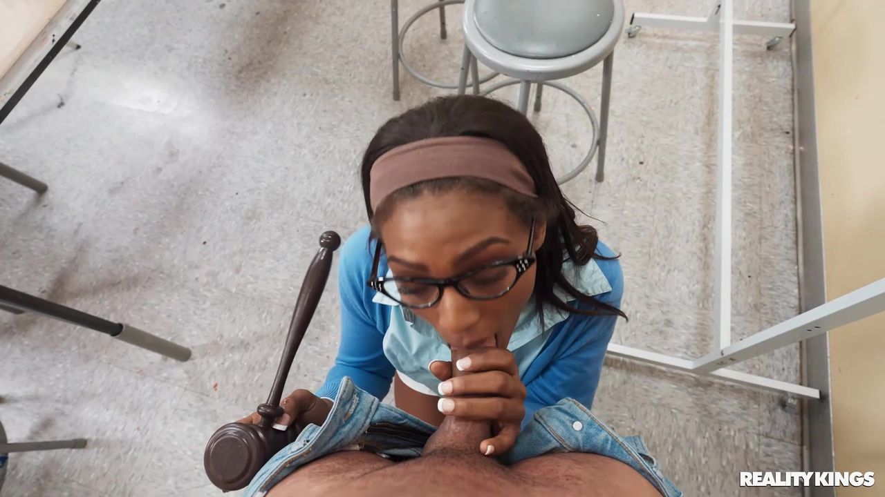 Rhae Woods se doigte la chatte lors d'une réunion ennuyeuse du conseil étudiant. Elle se fait surprendre par Mike Ox, puis prend sa grosse bite.