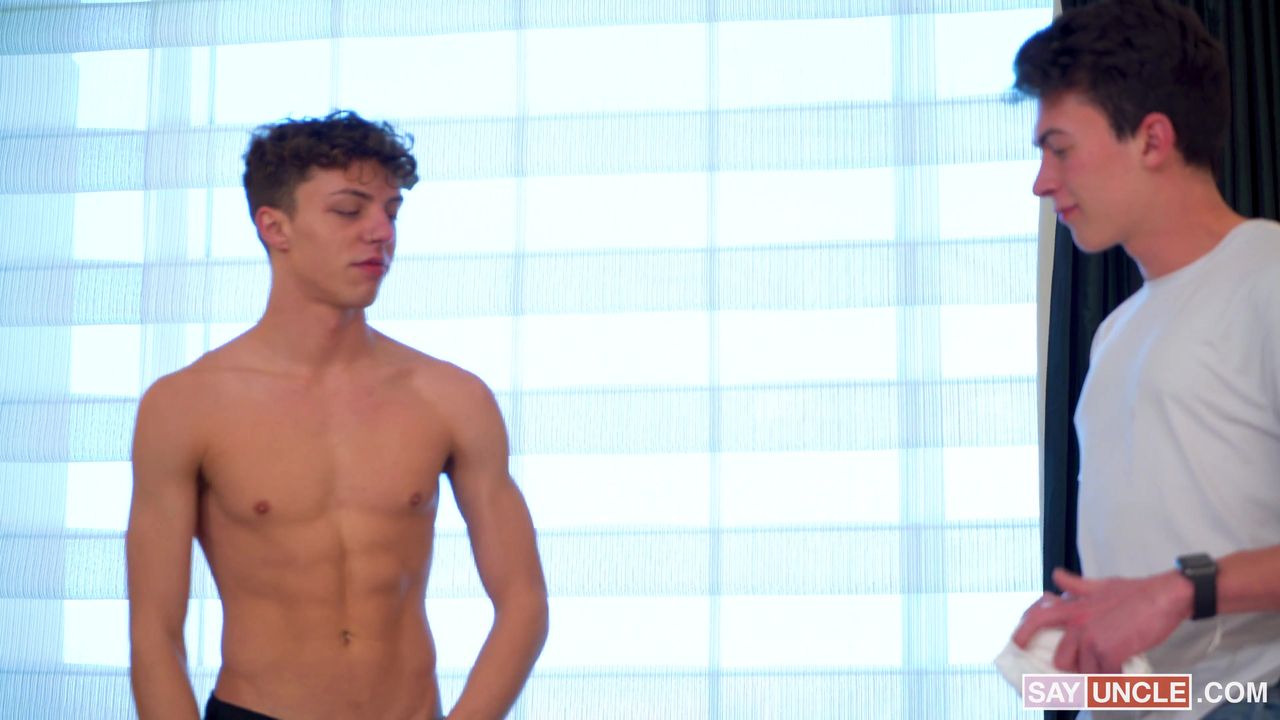 En cherchant quelque chose sous le lit, il s'est retrouvé coincé. Son demi-frère en profite et commence à lui sucer le cul avant de l'enculer.