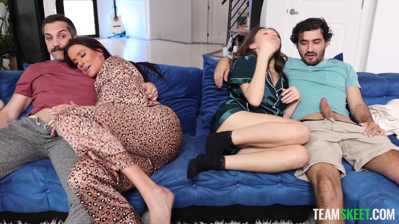 Sofie Marie et Maya Woulfe sont l'une à côté de l'autre avec leurs petits amis. Les choses chauffent et soudain elles se font baiser côte à côte