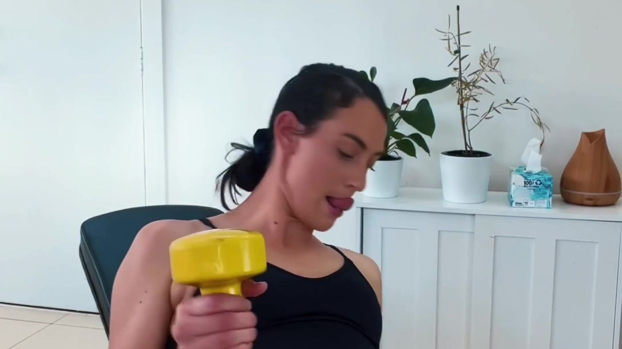 La fille adore garder son corps en bonne santé et c'est pourquoi elle fait de l'exercice, bien qu'elle brûle plus de calories en se masturbant avec ses jouets.