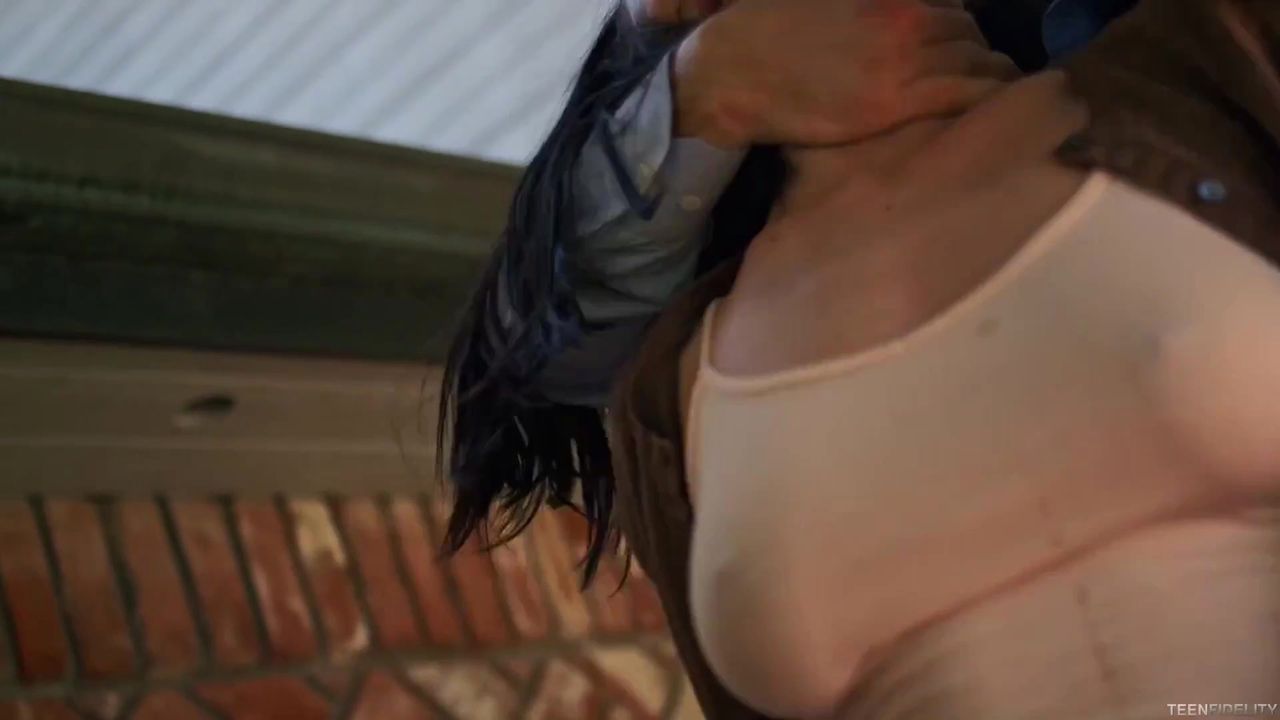 Teen brune sexy commence à sucer un mec en cravate, puis il la baise en levrette intense avec la cravate autour de sont coup pour bien la contrôler