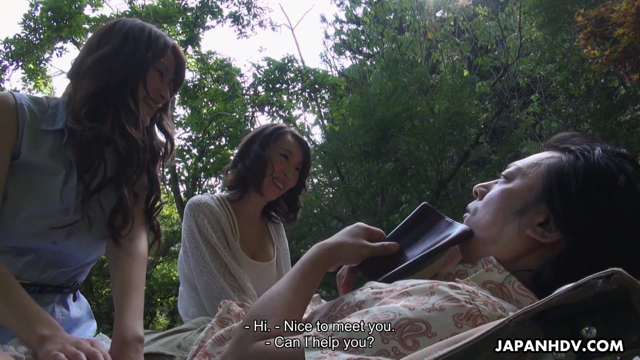 Sakura Aoi et Aya Kisaki dans une orgie qui commence dans le jardin