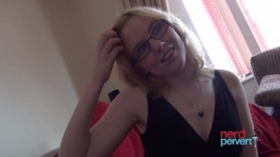 Jessica Lo est une jolie blondinette avec des lunettes qui a une grosse envie et se jette sur la queue de son homme.