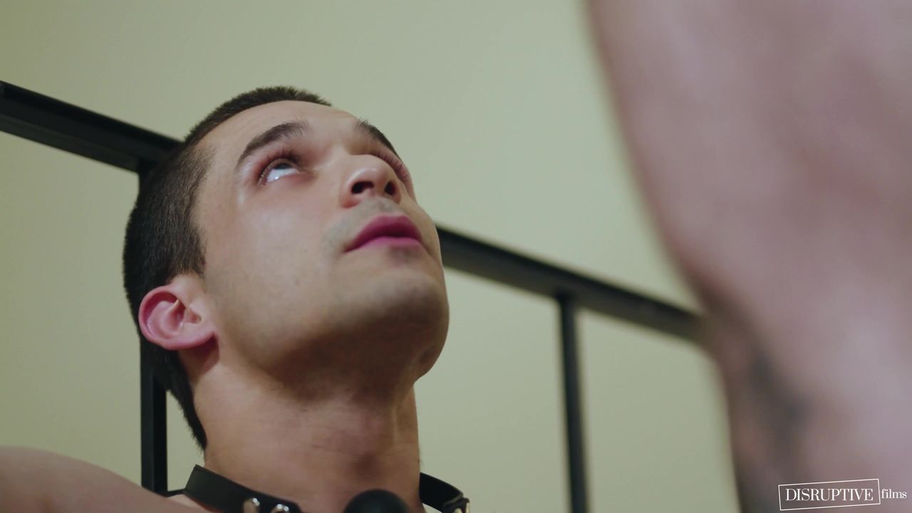 Le mec soumis attaché suce profondément et bave la queue de son sadique, cul serré défoncé en levrette par la bite épaisse en supplice brutaux.
