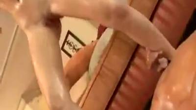 C'est aspergée d'huile, que la belle Rebecca Linares va se rassasier! Elle se mange des coups de bite dans tous les orifices et hurle de joie!