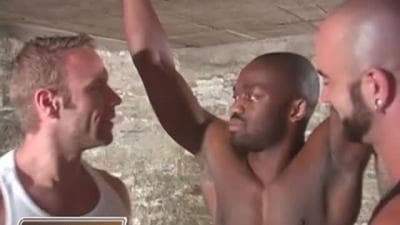 Voilà une bonne brochette de mecs qui n'ont qu'une envie: se sucer la bite! Tu ne peux pas perdre ce trio très excité.