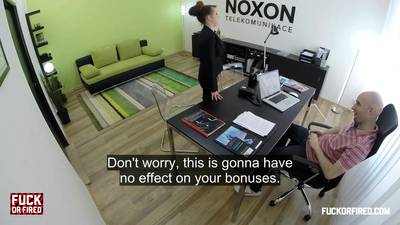 Cette femme brune veut à tout prix garder son emploi et c'est pour ça qu'elle baise généreusement avec son patron, afin qu'il la garde !