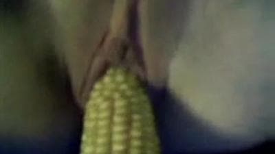 Cette femme ici présente on peut dire qu'elle prend son pied un peu avec tout ce qu'elle peut trouver ! Aujourd'hui un épis de maïs fera l'affaire !