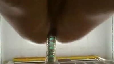 C'est effectivement un amateur gay qui dévoile une de ses pratiques ! Il bloque un gode chez lui, afin qu'il puisse s'installer dessus sans problème !
