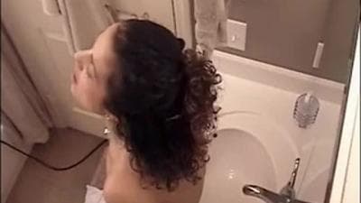 Cette jolie est dans une salle de bain mais comme il y a une caméra elle se fait filmer. Elle va se faire plaisir dans la salle de bain.