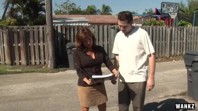 Voici une milf super chaude et bien gaulée qui baise copieusement avec ce mec a qui elle veut vendre une maison et elle est prête à tout pour ça !