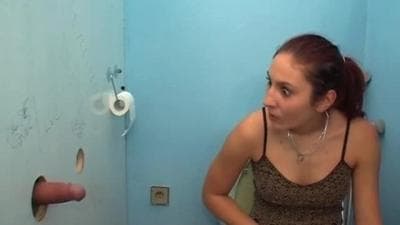 Des coups de langue bien sympathiques qu'un homme va recevoir avec ce gloryhole ! C'est une rousse sexy qui va s'occuper de son sexe et il adore ça !