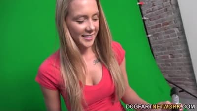Cette jolie nana est tout simplement sous le choc quand son partenaire se dénude et lui dévoile sa queue ! elle est énorme et bien constituée.