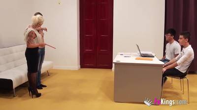 Des jeunes hommes qui vont avoir le luxe de baiser une milf pulpeuse et une teen tout aussi bandante ! Une baise de groupe à ne pas louper !