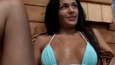 Nina Roberts profite du soleil pour se taper un client en extérieur. Cette baise à la cabane, finit en avalage de sperme