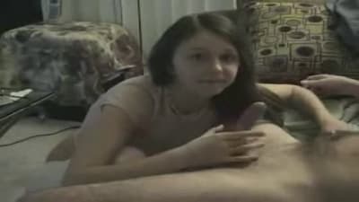 Sublime brune en chaleur qui suce copieusement le pénis de cet homme... Elle suce son mec, il adore et fini sur sa bouche !