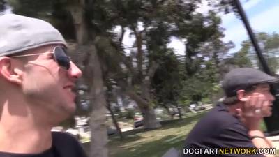 La sublime black Chanell Heart se retrouve avec deux eaux gosses blancs qui lui offrent leur belles bites bien dure pour une double pénétration.