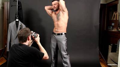 Le beau et musclé Manuel Deboxer profite d'une séance photo pour se faire sucer sa grosse bite bien épaisse par le photographe.