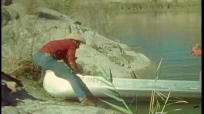 Ce beau gosse suce la grosse bite bien dure d'un cowboy avant de gémir de plaisir pendant qu'il l'necule profondément en plein air.